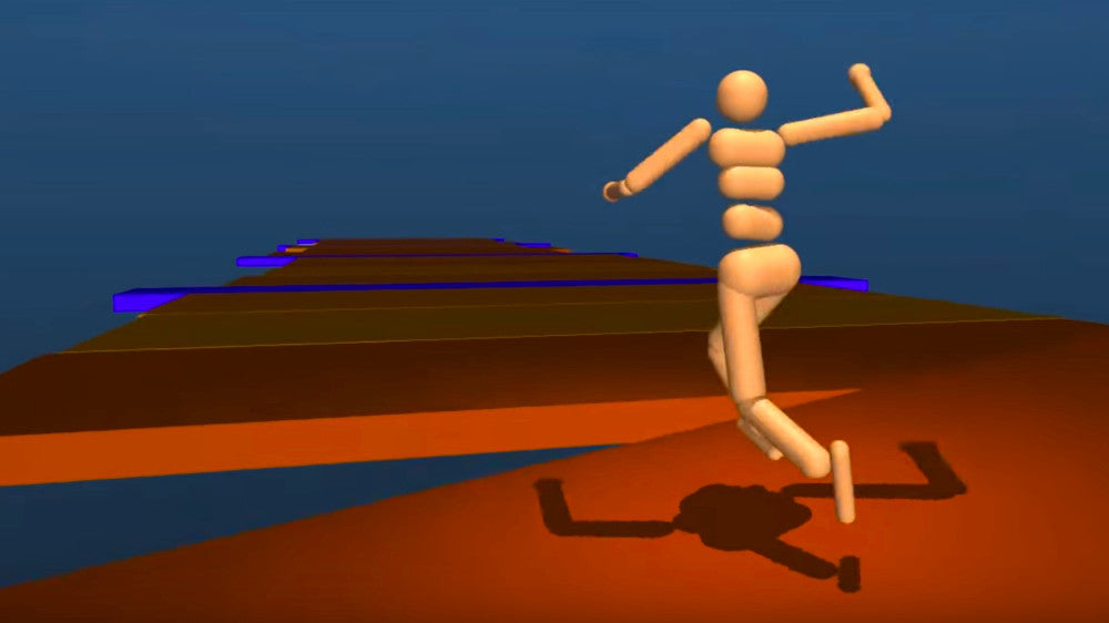 So what if you combined these two principles? What if you tried to design a highly accurate model of a human body, down to skeleton and muscular structure? Then used that model of a human to run another program with the goal of something like ‘Go from A to B as quickly as possible’?